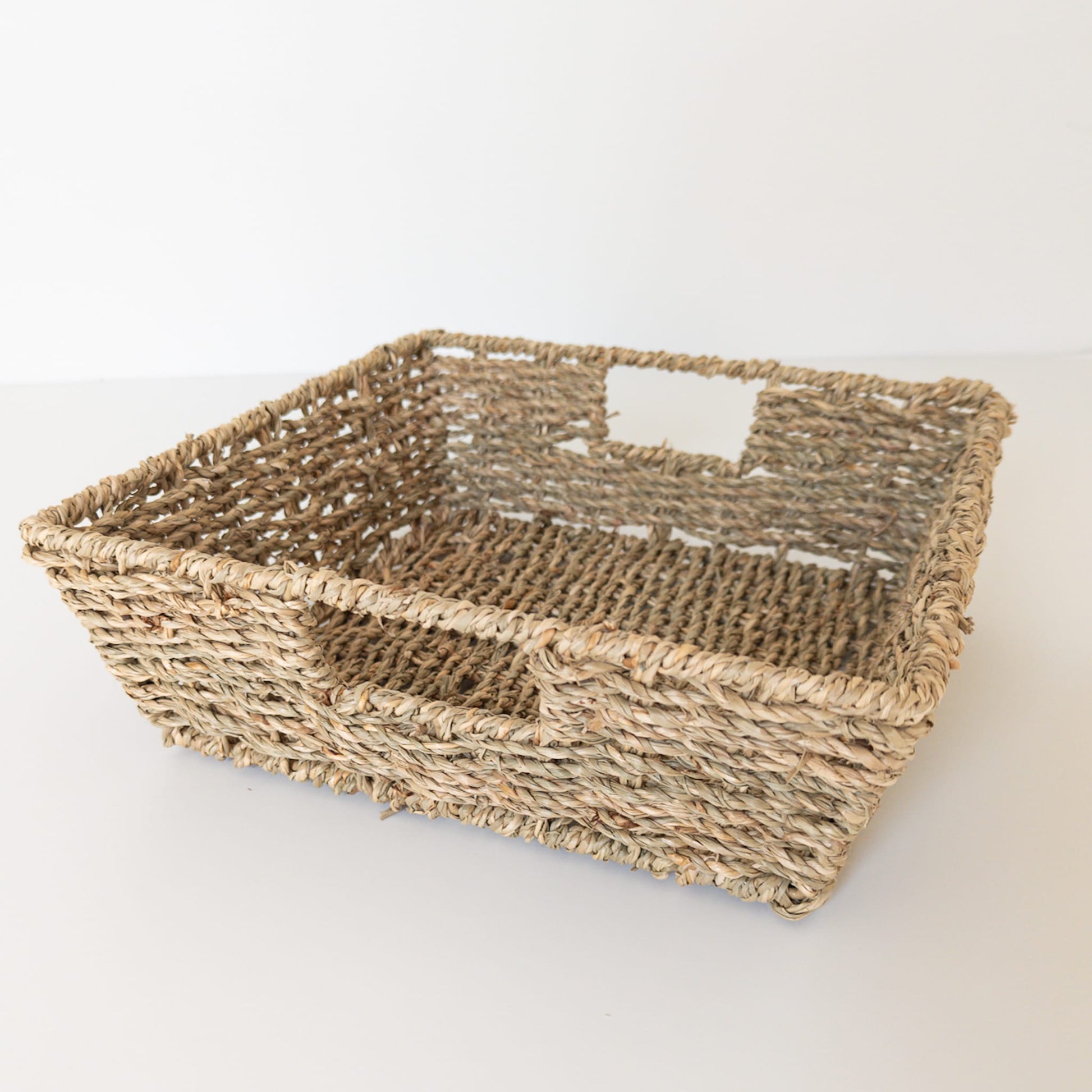 Handwoven from natural seagrass, this square basket adds an organic, elevated touch to any presentation.